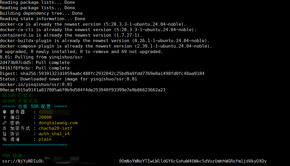 搭建好后,会生成SSR账号信息以及SSR链接。