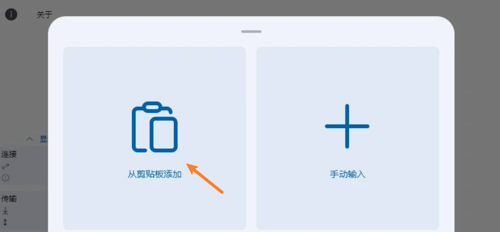安装好后,点击+新的配置文件,找到v2ray节点的一键导入链接,复制链接,点击“剪贴板添加”。